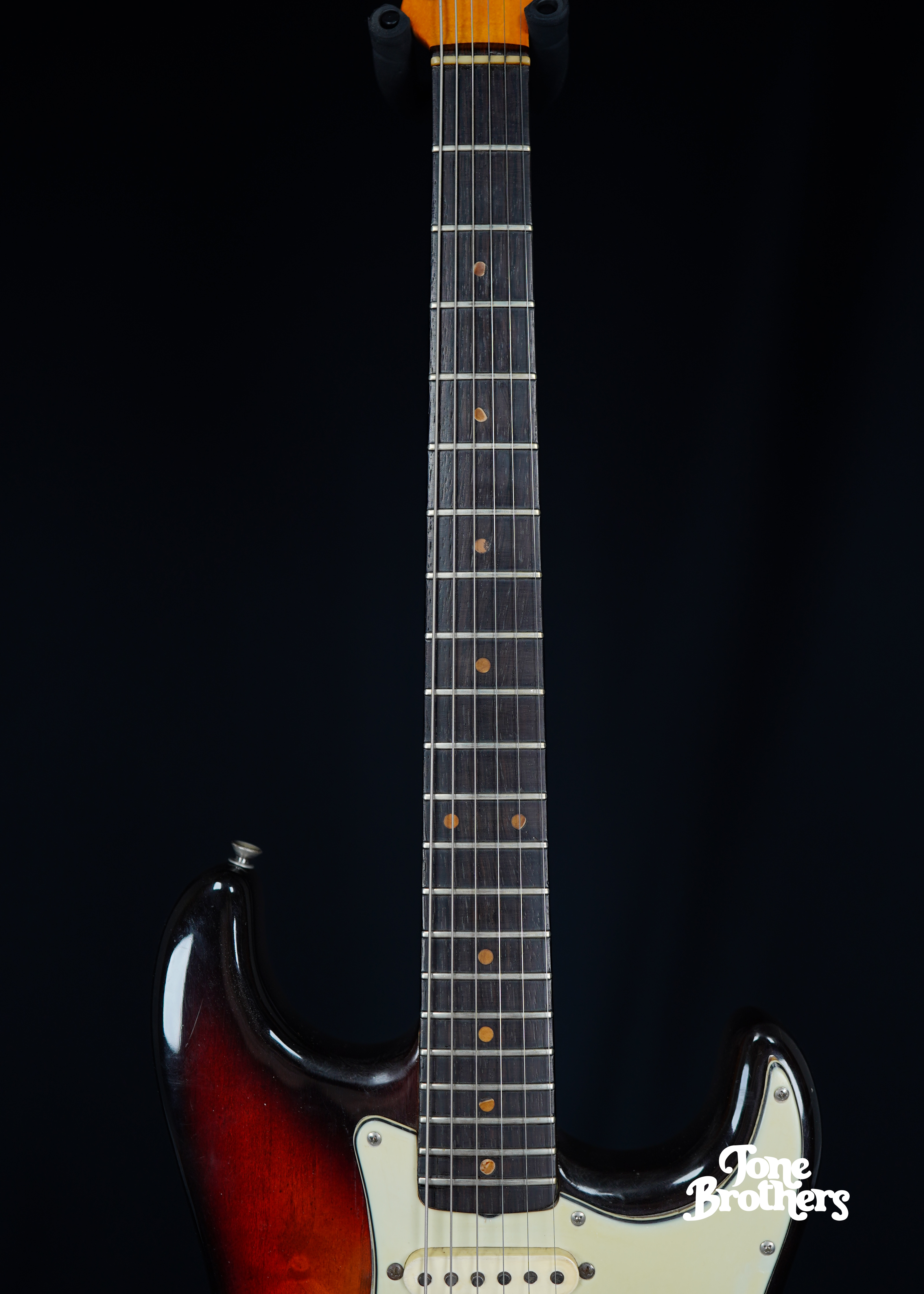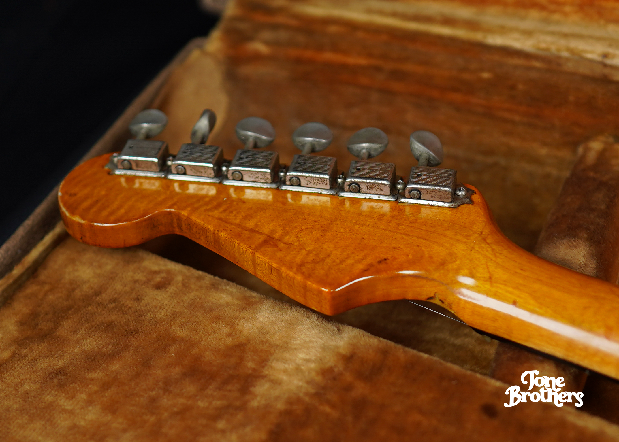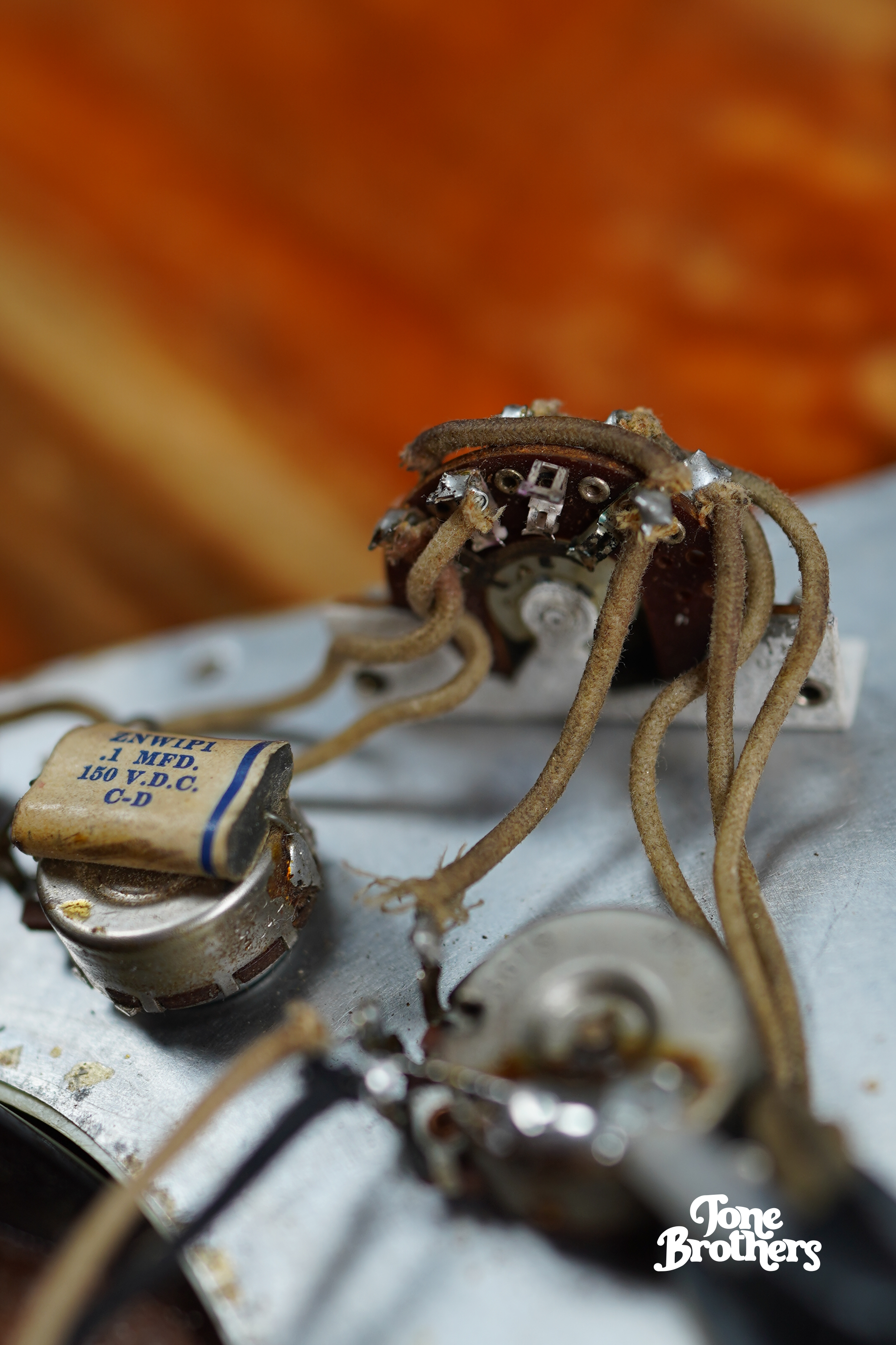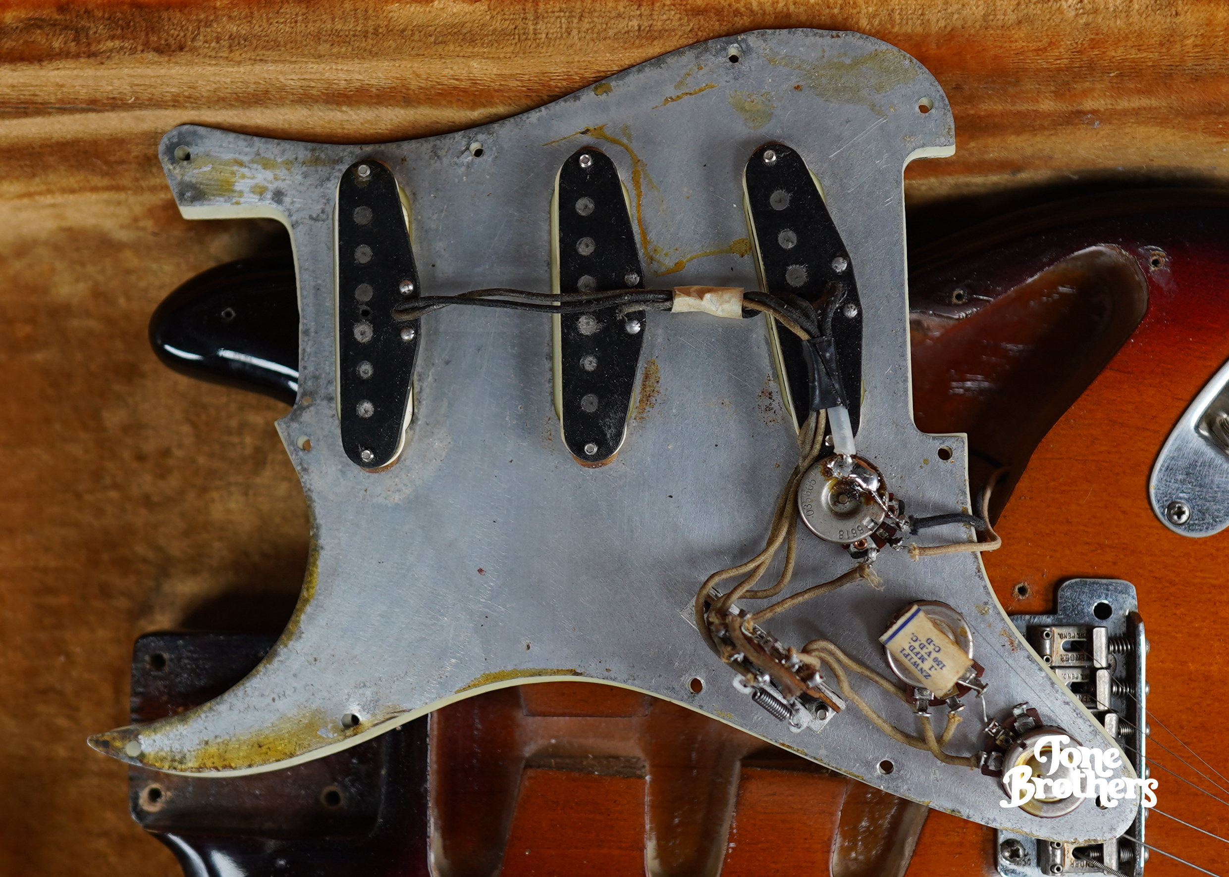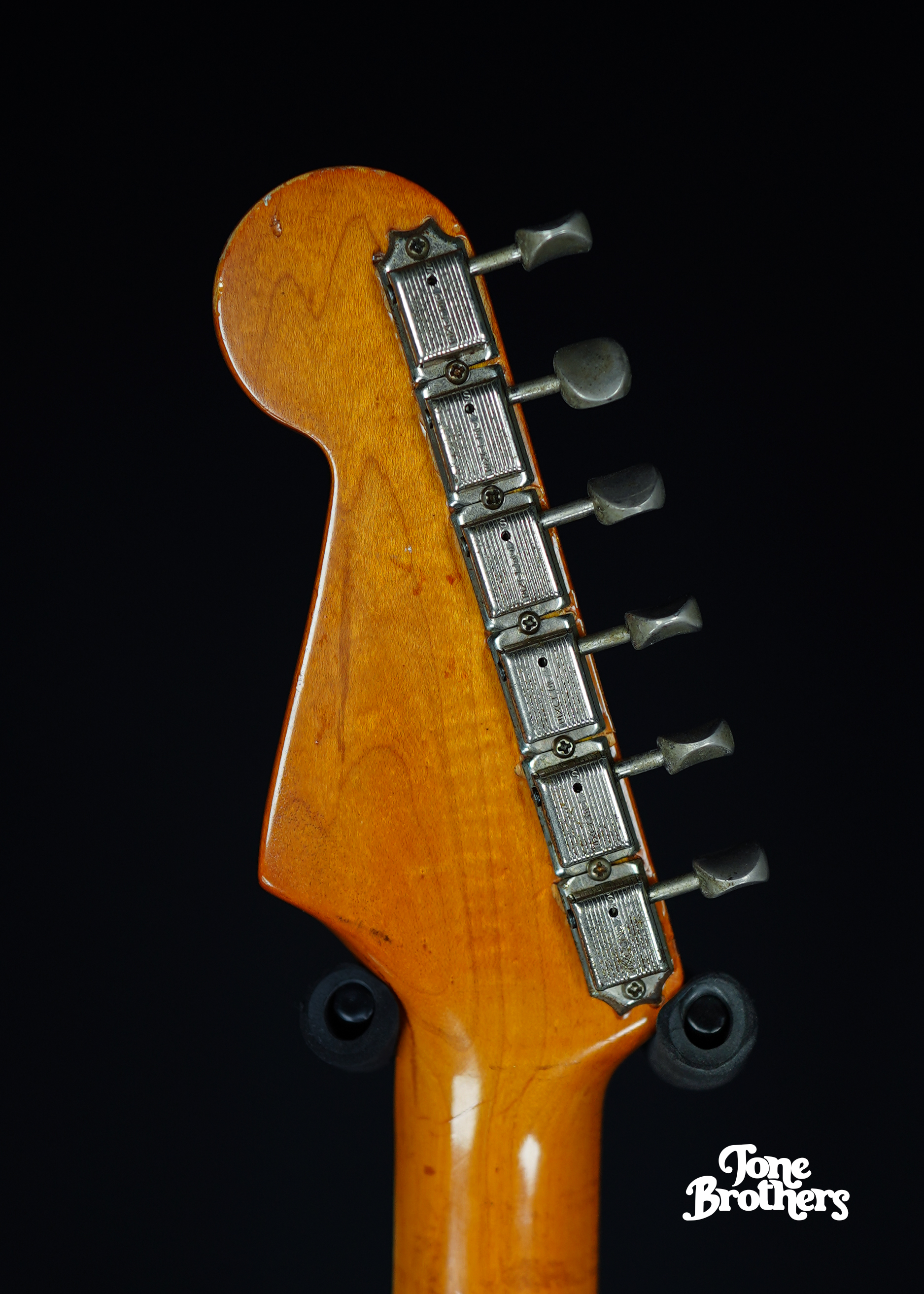 - Electronics: All original save for volume pot (replaced with a vintage correct 250k pot for 1966), pickups are strong and balanced (measuring 6.25k / 6.35k / 6.52k ohms)!