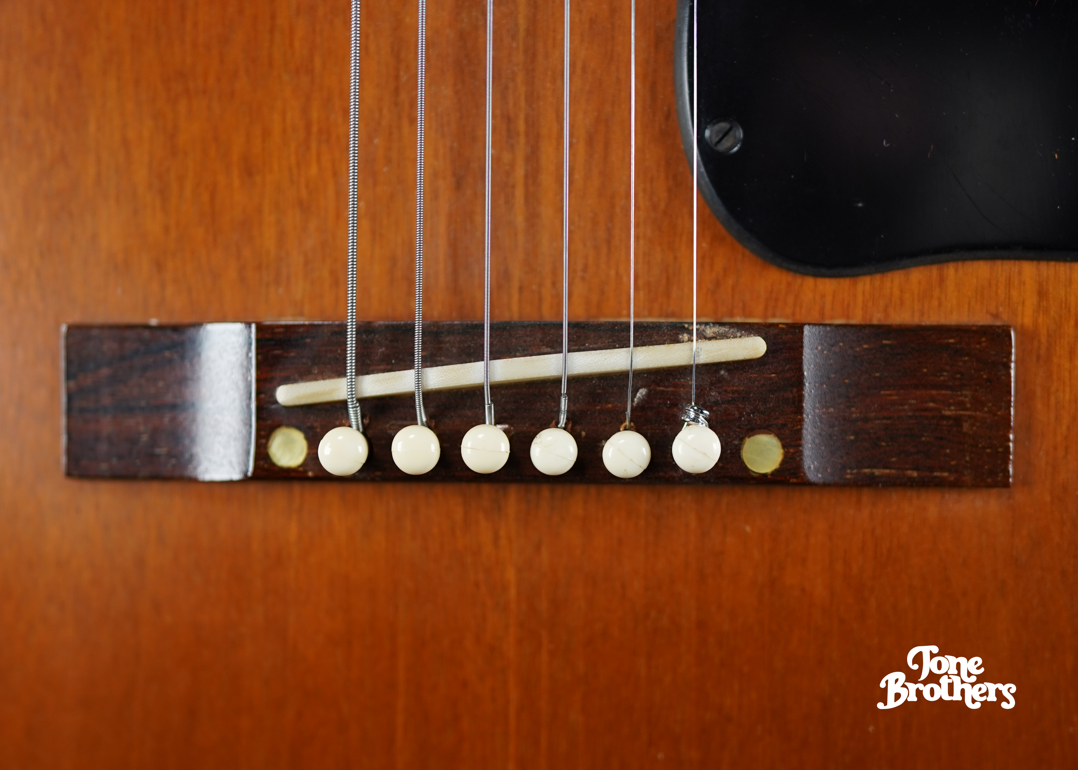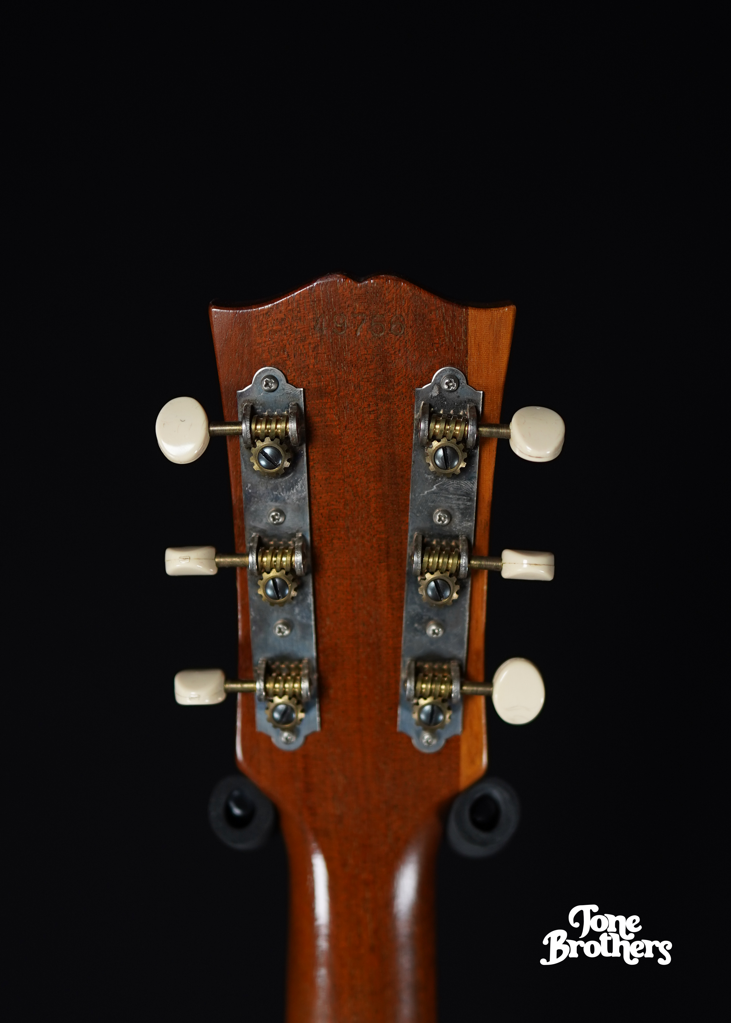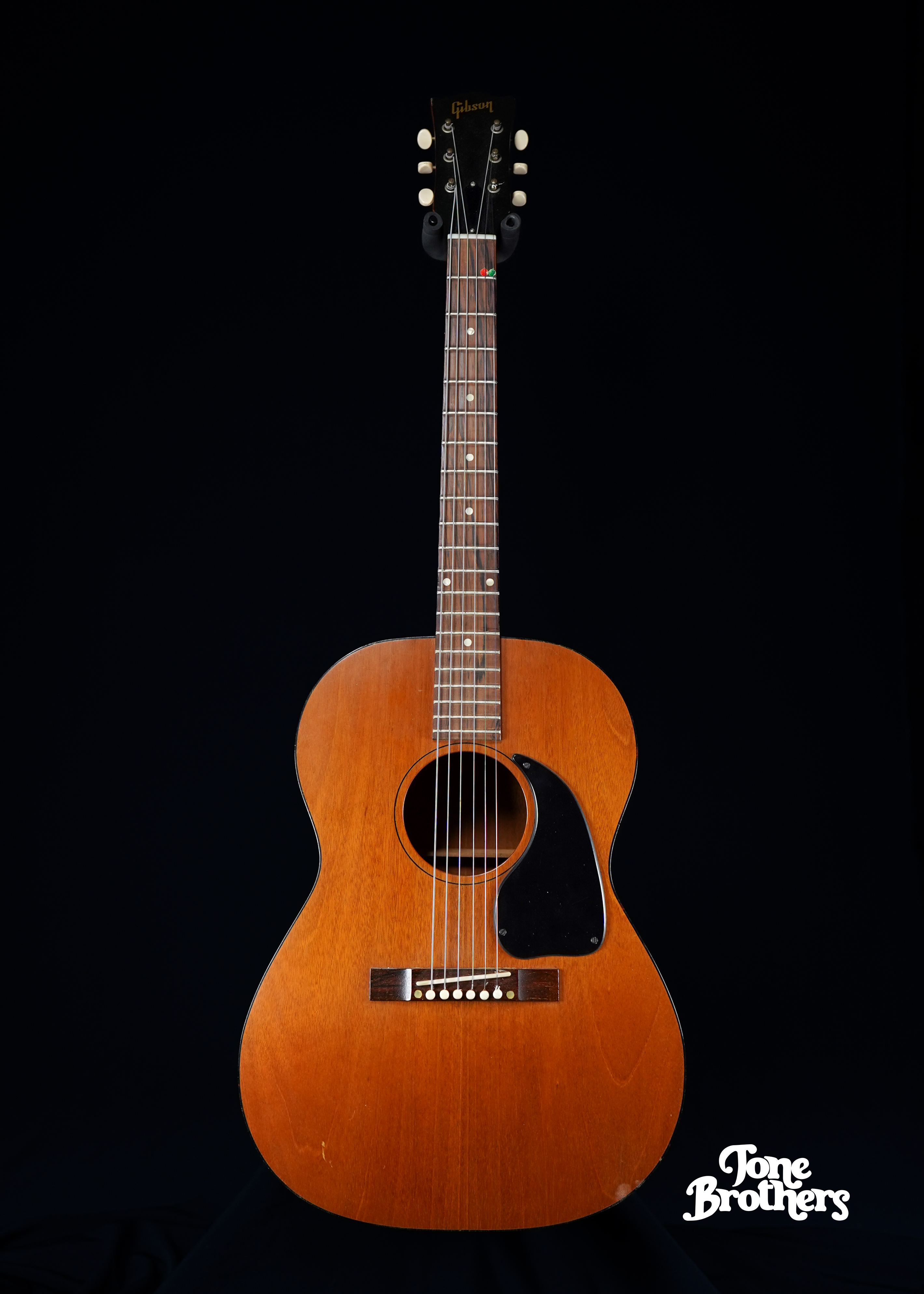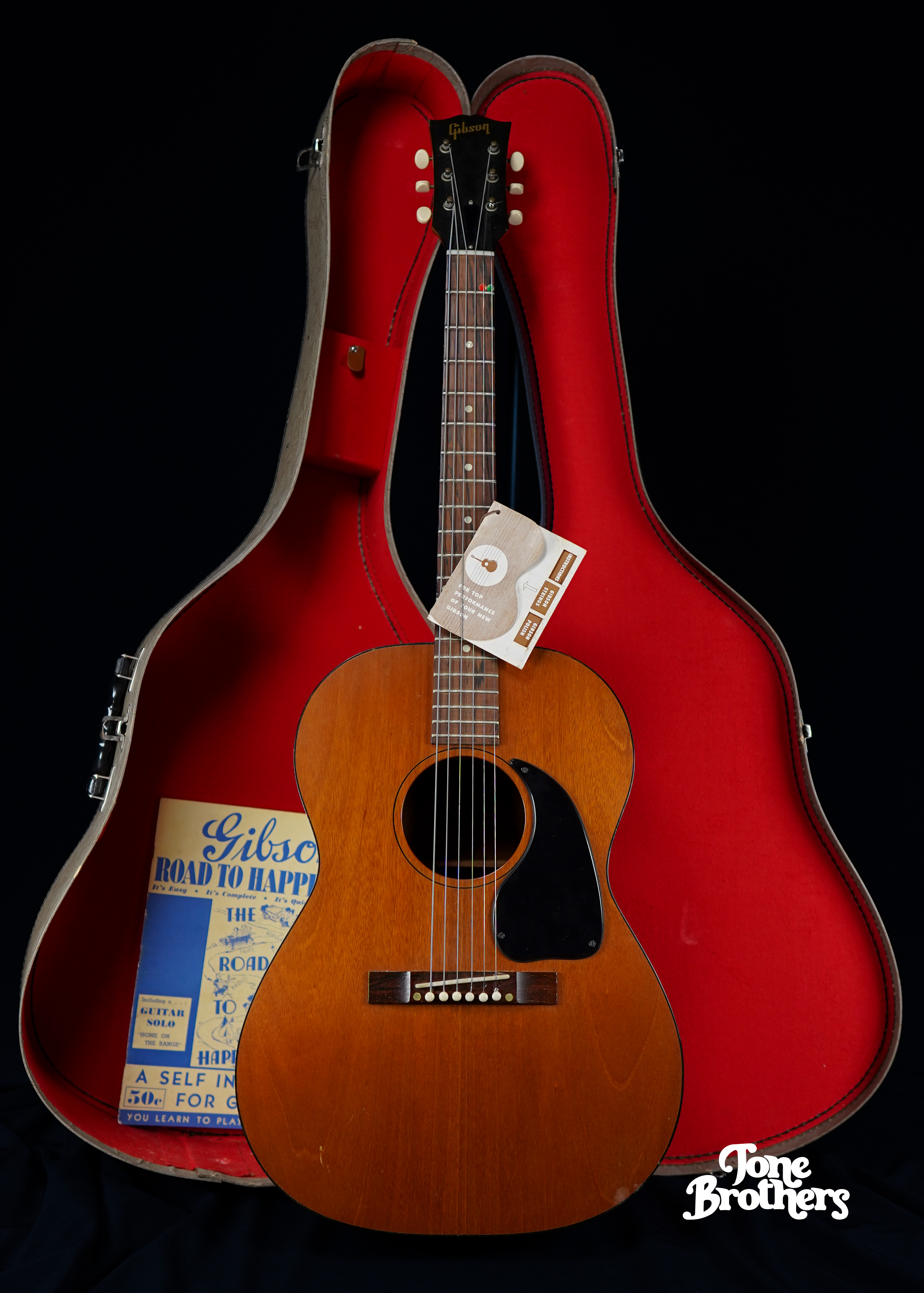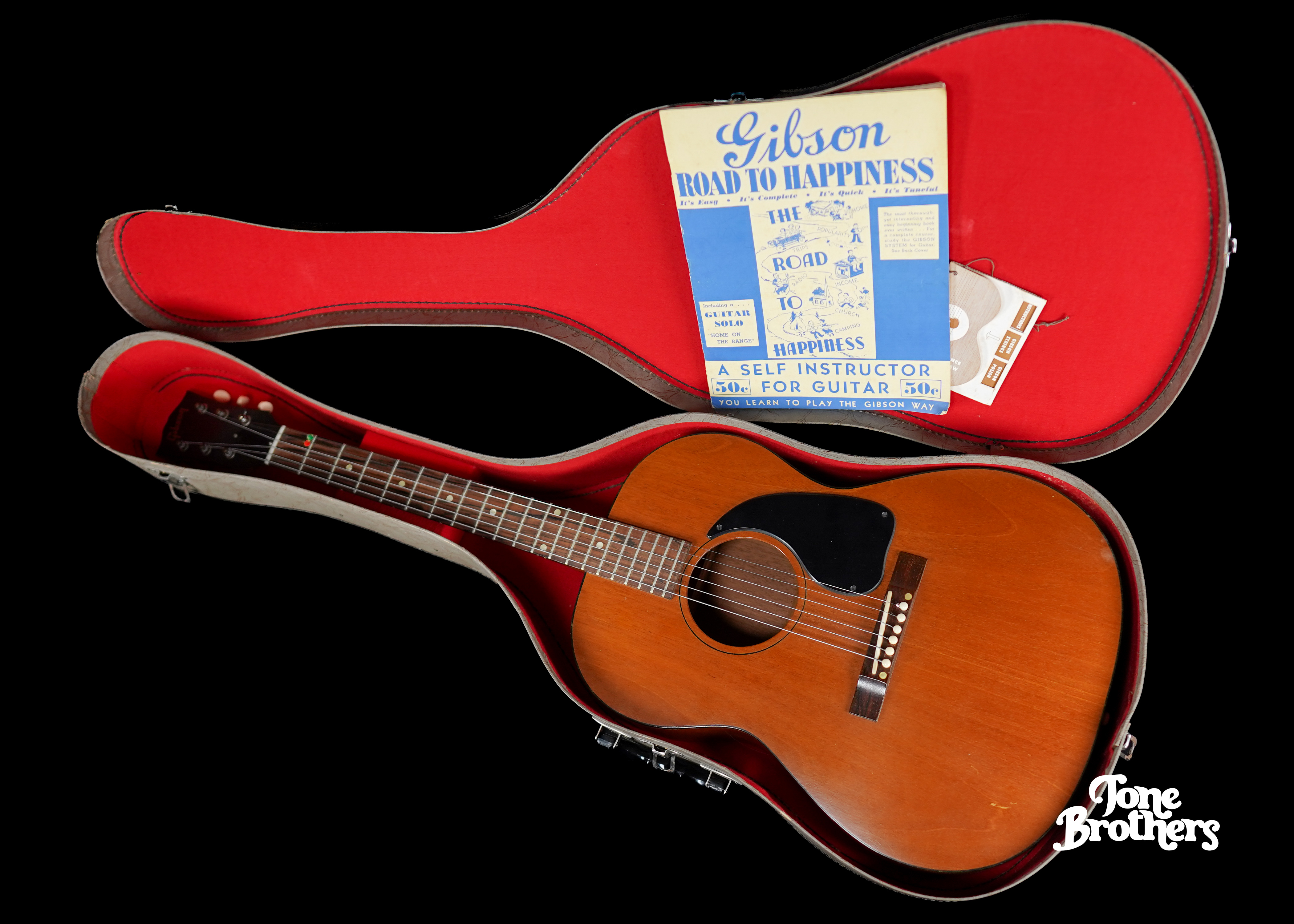 - Important notes: a lightweight 100% original Gibson LG-0 acoustic guitar brought to us by the original owner's family. Bought brand new in Kingston, Ontario, Canada over 60 years ago. The guitar is incredibly with no repairs, no cracks, or touchups of any kind. The guitar sports a rare factory solid-black pickguard (most of the time these came with the typical thinner tortoise pickguard). The guitar is housed in its original case and comes with original Gibson self-teaching Guitar book, original pick, original hangtag, and notes from the original owner! The guitar has evidently not been touched in half a century and is what we call a "time capsule". We hope it finds a great new home and gets more playing time it desperately deserves.