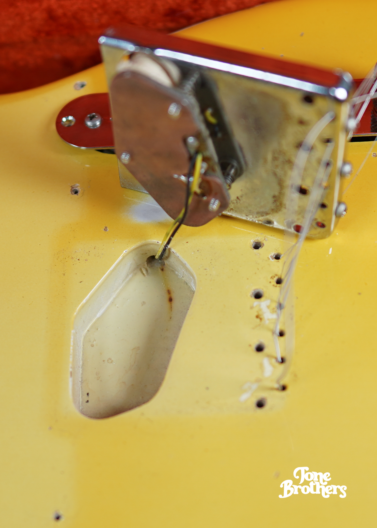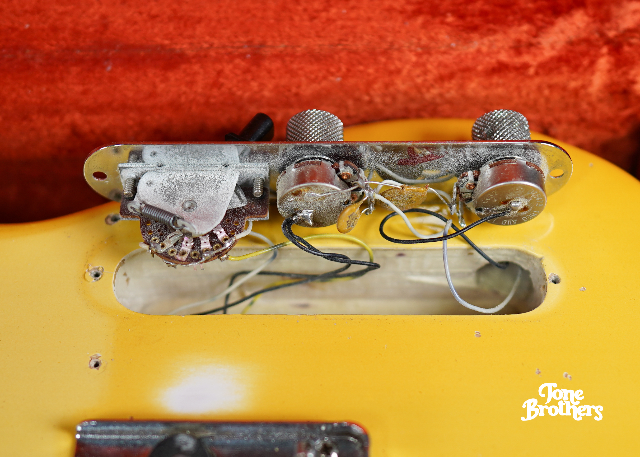 - Date(s): mid-1969 (typical mid-69 missing neck date, original pots dated 34th week of 1966 with original solder, 218XXX Serial Number, mid-69 spec body with no diagonal route)